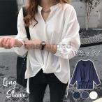 ブラウス レディース 無地 シャツ トップス Vネック 長袖 ビジネス 通勤 チュニック オフィス 春服 カジュアル シフォン OL 大人