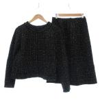 ヴィータ カリーノ カタセ Vita Carino KATASE セットアップ ジャケット スカート ウール 9 黒 ブラック ツイード柄 ラウンドネック