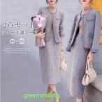 セットアップ スカート スーツ レディース きれいめ ツイードスカート ノーカラージャケット ツイードジャケット 大きいサイズ 3L 4L 5L 秋 冬 韓国
