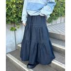 スカート ティアードデニムロングスカート