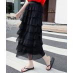 スカート 秋の必需品!ふわっと愛らしく。チュールレイヤード ティアードロングスカート