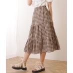 スカート ギンガムチェック柄 ティアード ギャザー ロング スカート