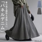 スカート デニム ロング レディース ボトムス ロングスカート 無地 デニムスカート ハイウエスト パネル フレア 切り替え 綿 混 ウエストゴム
