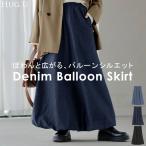 スカート デニム ロング 綿100% レディース ボトムス フレア Aライン ウエストゴム 無地 コットン100%