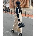 ワンピース 肉厚素材が気になるスタイルをカバー♪前後2wayダンボールハーフジップジャンパースカート(ロング丈)