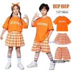 キッズダンス衣装 セットアップ トップス オレンジ 韓国 子供服 ヒップホップ キッズ チェック柄 短パンツ スカート ハーフ丈 5分丈 体操服 ダンス衣装 k-pop 演