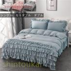 布団カバーセット 無地 フリル 可愛い 姫系 和式 寝具カバー 3点セット シングル ベッドカバー ベッドスカート オシャレ 洗える 四季通用