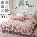 姫系 布団カバー 4点セット 寝具カバー フリル キュート プリンセス お姫様 綿100% コットン かわいい 爽やか 枕カバー シーツカバー ベッドカバー