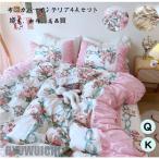 敷き布団カバー 姫系 布団カバー 掛け布団カバー 4点セット クイーン 薔薇柄 おしゃれ 寝具カバーセット 綿100% カバーセット フリル付き ベッドスカート