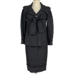 シャネル CHANEL ツイード セットアップ ココマーク フリンジ 09P セットアップ スカートスーツ シルク リネン コットン ブラック レディース 中古