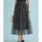 スカート プリントフレアチュールロングスカート