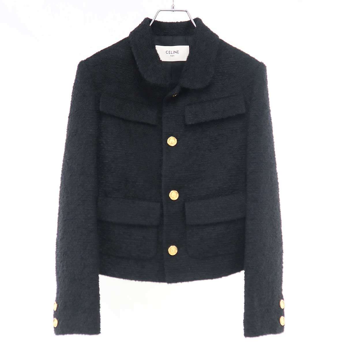 CELINE セリーヌ サンジェルマン ジャケット&プリーツスカート セットアップ ブークレットナッテ RV09W333J.38NO/RJ02V333J.38NO ブラック 34/34 【中古】 ITMATAAN5AF4