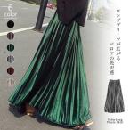 プリーツスカート ロング ベロア 春 夏 秋 冬 ロングスカート プリーツ マキシ丈 aライン ハイウエスト ウエストゴム ふんわり ボトムス ロング