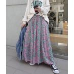 スカート 花柄ロングプリーツスカート