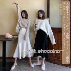 マーメイドスカート スカート レディース ボトムス ロングマキシ丈スカート ニットスカートフレア裾 ハイウエスト 着痩せ 暖かい 秋冬春 体型カバー