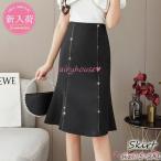 スカート ひざ丈 春夏 マーメイドスカート 無地 レディース aラインスカート 黒 膝丈 ハイウエスト ボトムス 美脚 通勤OL オシャレ大人可愛い 40代