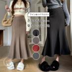マキシ丈スカート ロング丈スカート スカート 厚手 マーメイド フレア裾 ハイウエスト 着痩せ 暖かい 秋冬春 体型カバー