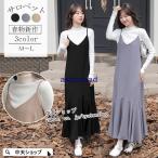 キャミワンピース レディース サロペットスカート Aライン 無地 春秋 vネック 韓国風 ゆったり カジュアル マーメイド ロングワンピ 肩紐長さ調整 上品 大人 夏