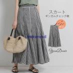 スカート ロング丈 フレア ギンガムチェック柄 ボトムス レディース カジュアル 上品 ロングシーズン 大人 ボトムス カジュアル おしゃれ 体型カバー 夏