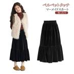 ベルベットスカート 子供服 マーメイドラインスカート フレアスカート ロングスカート キッズ ジュニア 秋冬 ウエストゴム カジュアル かわいい 120 130 140 150 160 170cm