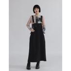 ラシュッド LASUD フェイクレザーストラップジャンパースカート (ブラック)