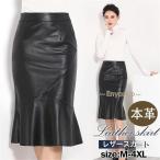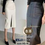 レザースカート レディース ロングスカート 本革 ボトムス ハイウエスト ビジネス フォマール 着痩せ ゆったり 上品 きれいめ シンプル フェミニン