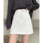 デニムスカート ハイウエスト デニム フリンジ Aライン デニム スカート