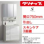 クリナップ 洗面化粧台 エス(S) 間口750mm 引出しタイプ スキンケア3面鏡・ダブルLED照明 壁出し水栓 BSR_752JSSW___+M-753SRNW