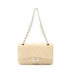シャネル CHANEL ショルダーバッグ 8番台 2003-2004 キャビアスキン ダブルフラップ マトラッセ 25cm チェーン ベージュ【中古】