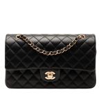 シャネル マトラッセ25 ココマーク Wフラップ チェーン ショルダーバッグ 1112 ブラック ピンクゴールド金具 ラムスキン CHANEL 【中古】