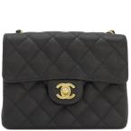 レア美品 シャネル ヴィンテージ ミニマトラッセ キャビアスキン ミニ フラップ バッグ チェーンショルダーバッグ ポシェット ブラック シルバー金具 A01115