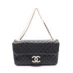 シャネル CHANEL ショルダーバッグ 18番台 2013-2014 ラムスキン ダブルフラップ マトラッセ 30cm シルバー金具 ブラック【中古】