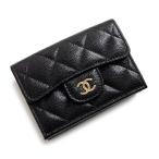 シャネル チェーンウォレット マトラッセ ココマーク カードケース ミニ キャビアスキン AP0238 CHANEL 財布 黒 【安心保証】