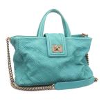 シャネル チェーンショルダーバッグ 17番台 カーフスキン グリーン マットゴールド金具 2WAY ショッピングトート 中古 送料無料