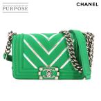 新品同様 シャネル CHANEL ボーイシャネル スモール チェーン ショルダー バッグ ラムスキン グリーン A67085 シルバー 金具 90317970