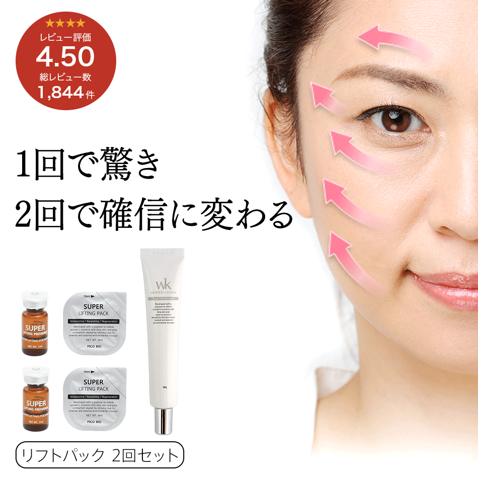 25%OFF 2セット購入でパック1回分プレゼント リフトアップ シワ ほうれい線 たるみ くすみ 引き上げ 毛穴ケア スキンケアセット リフティングパック フェイスマスク 韓国コスメ パック2回分 WKクリーム セット