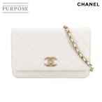 未使用 展示品 シャネル CHANEL マトラッセ チェーン ウォレット 長財布 キャビアスキン ホワイト ゴールド 金具 Chain Wallet 90306333