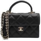 【中古】シャネル マトラッセ トップハンドル ミニ フラップ レディースバッグ クロスボディ チェーンショルダー 2Way ショルダーバッグ AS2431 ラムスキン シャンパンゴールド金具 ブラック フォーマルバッグ 4282577J