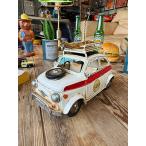 フィアット500 チンクエチェント ブリキオブジェ ルーフキャリア仕様/スキー板 写真ホルダー (アイボリー)