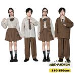 ヒップホップ ダンス衣装 キッズ スーツ ブラウン セットアップ 発表会 子供スーツ スクール制服 ジャケット 長袖シャツ 入学?入園スーツ 男の子 女の子 學院風
