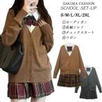 制服 4点セット カーディガン 制服 リボン チェック柄 プリーツスカート 女子 スカートセット 入学 高校 中学 学生服 なんちゃって制服 女子高生スカート レディ