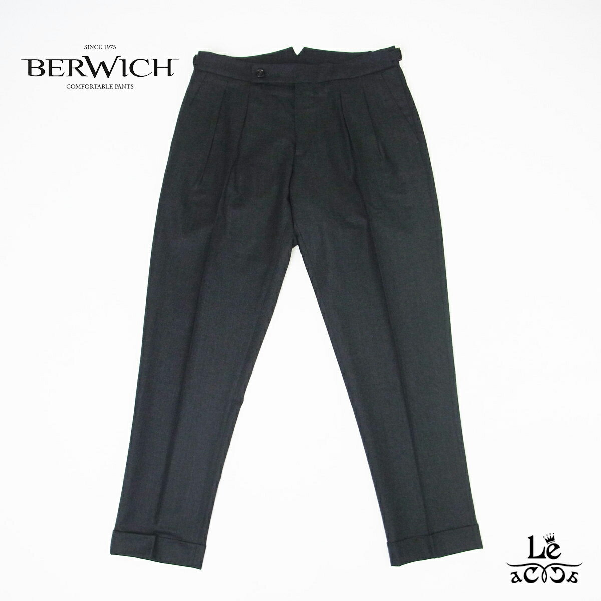 【30%OFF】BERWICH ベルウィッチ SCOTCH スコッチ ツープリーツ アジャスター付き パンツ ストレッチウールポリエステル グレー 無地 メンズ イタリア ブランド 国内正規品【送料無料】