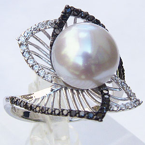 【10%OFF 12/3 20時より】パールリング 真珠 真珠 パール リング 南洋白蝶真珠 10mm ホワイトゴールド ダイヤモンド ブラックダイヤモンド 真珠 指輪 人気 おすすめ フォーマル プレゼント ギフト ジュエリー ブラックフライデー
