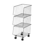 キャスター付き 収納ワゴン 3段 スタッキングワゴン バスケット ワゴン 衣類収納 雑誌収納 小物収納 四段 収納かご スチールワゴン ワイヤーバスケット