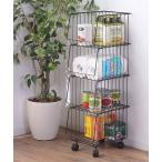 スタッキングワゴン 4段 ワゴン キャスター付き バスケット 収納 スリム キッチン収納 スチール 高さ95 かご サイドワゴン トローリー ランドリーバスケット