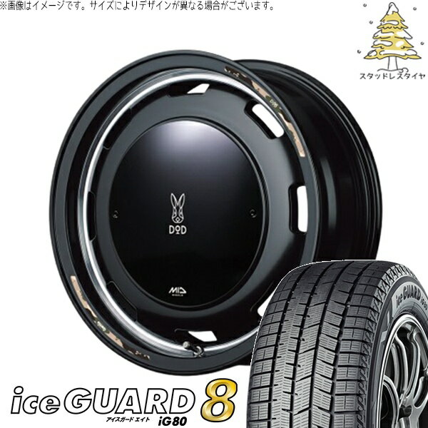エブリィワゴン 165/60R14 スタッドレスタイヤ ホイール 4本セット 新品 | ヨコハマタイヤ (YOKOHAMA) アイスガード エイト (iceGUARD8 IG80) × エムアイディー (MID) MIDホイール x DOD ウシャリントバリ セミグロスブラック 14インチ 4.5J +45 4穴100