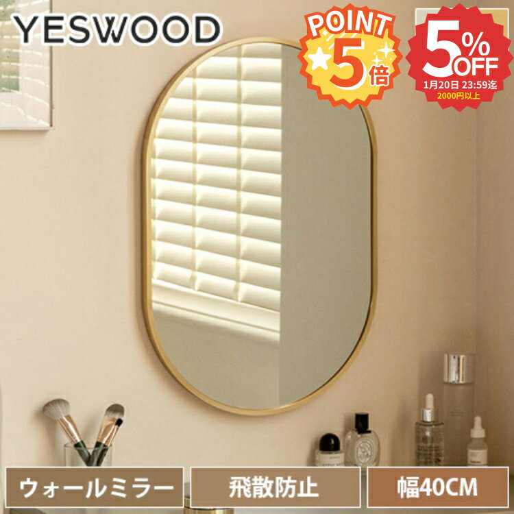 【5%OFF◆P5倍 20日限定】ウォールミラー 壁掛けミラー 幅40cm 楕円型 鏡 壁掛 洗面所 玄関かがみ 玄関 壁掛け鏡 かがみ 小さめ 玄関鏡 角丸 ミラー 飛散防止 楕円形 メイクミラー 軽量 化粧鏡 メイク 韓国インテリア 洗面台 高さ60cm おしゃれ モダン 可愛い