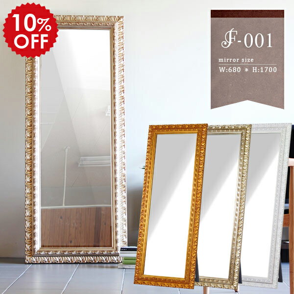 スタンドミラー 鏡 全身 全身鏡 大型ミラー ゴールド アンティーク ミラー スタンド 大きい 全身ミラー 白 大型 日本製 姿見 壁掛け ダンス 飛散防止 ホワイト 高級感 姫 壁 ウォールミラー 60cm 賃貸 壁面 壁掛けミラー 幅68cm 高さ170cm F-001SM4815 ◎