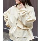 ブルゾン アウター この冬最旬。スタンド衿ドロストデザイン袖ボリューム中綿オーバーサイズブルゾン レディース