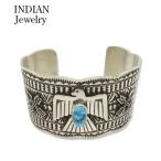 INDIAN JEWELRY ナバホ族 Thunderbird スタンプワーク バングル Navajo Stampede Silver Bangle Orville White Kingman Tq. IJ-566